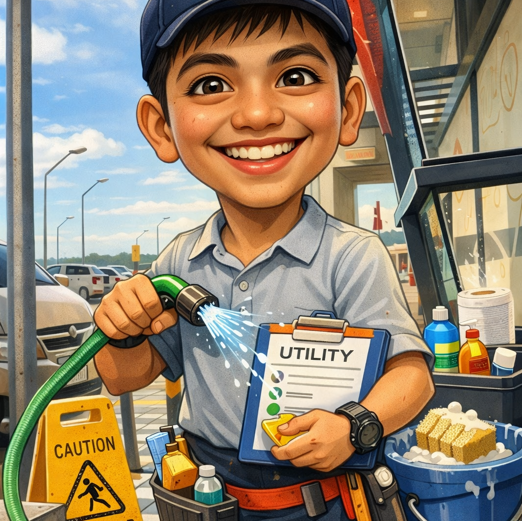 Hi! I’m from the Utility Team. I’m the one who makes sure this stop feels like a breath of fresh air. From sparkling floors to the cleanest restrooms on the map, I’m here to make sure your break is as refreshing as our coffee!